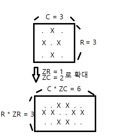 스캐너는 R C ZR ZC를 받아서 R * ZR, C * ZC만큼 출력합니다.